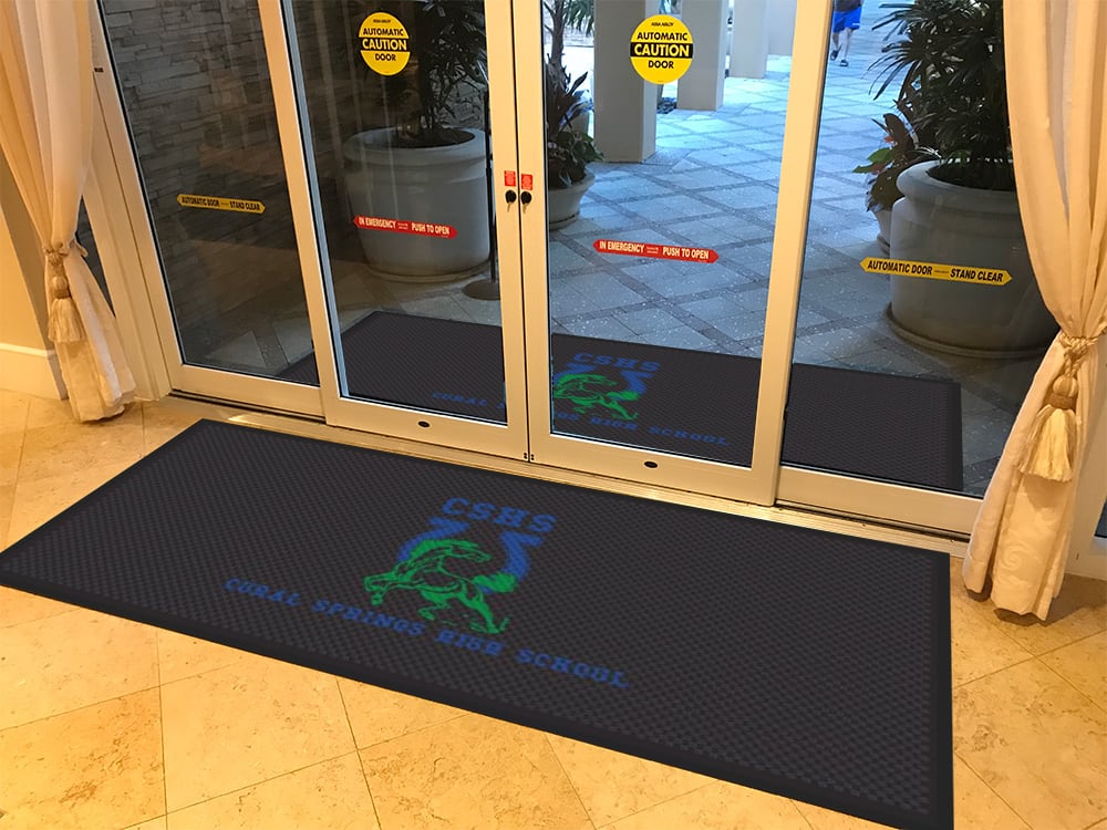 A digital print on polymetric film allows customers to customize the Rubber Scraper mat with logos, images, and messages.