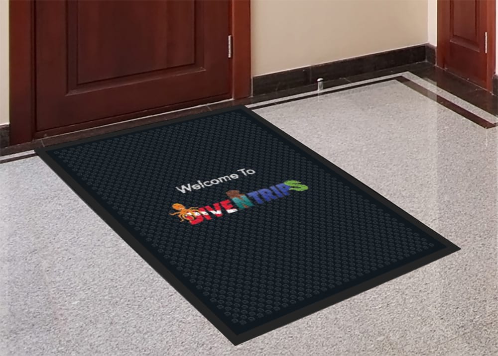 A digital print on polymetric film allows customers to customize the Rubber Scraper mat with logos, images, and messages.